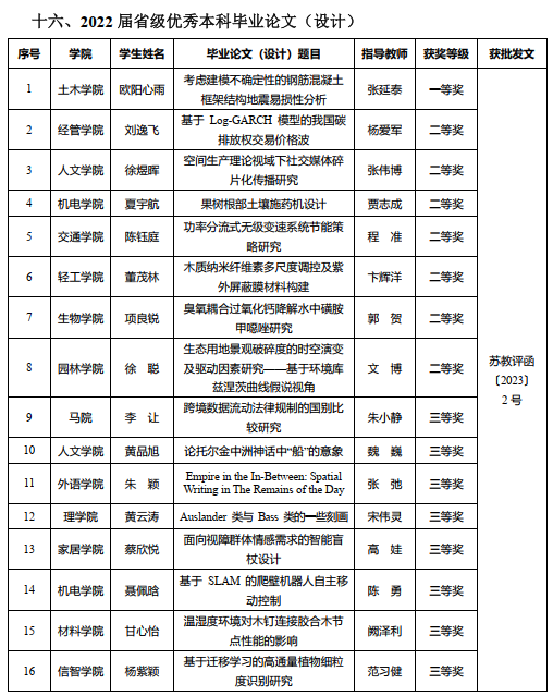 我院两位学生毕业论文获2022届江苏省优秀本科毕业设计(论文)