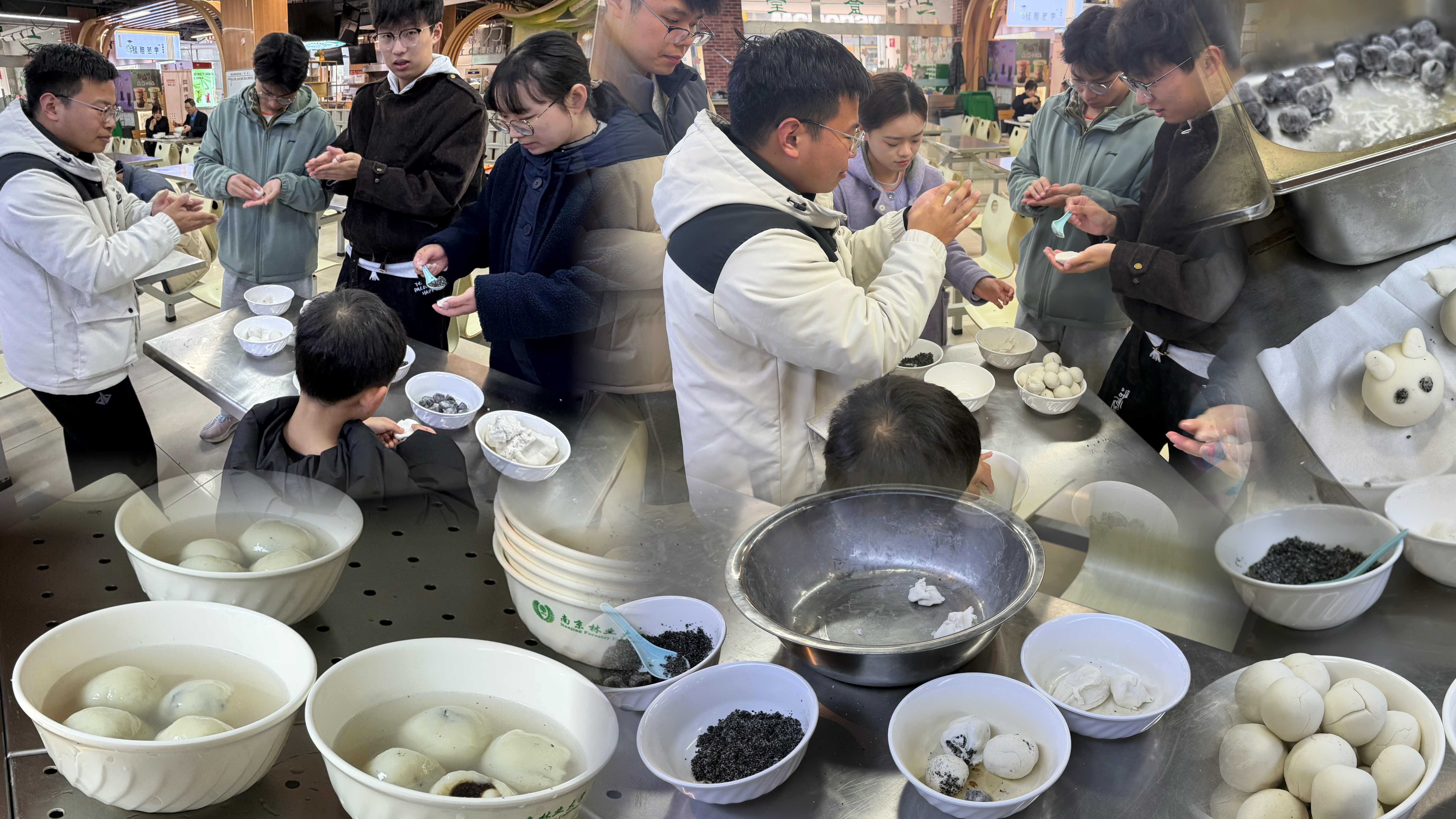 新庄、白马两校区活动同步升温,热闹非凡。新庄校区第二食堂内,糯米与馅料齐备,同学们在揉、填、搓的实践中渐入佳境;白马校区则以“白马启新程,元宵共团圆”为主题,将猜灯谜、投壶纳福等趣味环节与包汤圆体验相结合。两校区师生在品尝热气腾腾的手工汤圆、畅谈新学期展望的过程中,近距离感受了传统民俗魅力,让校园充满了家的温暖。