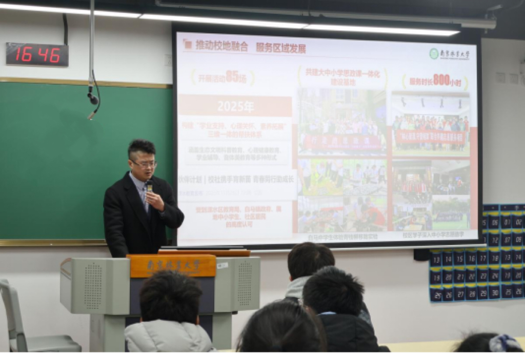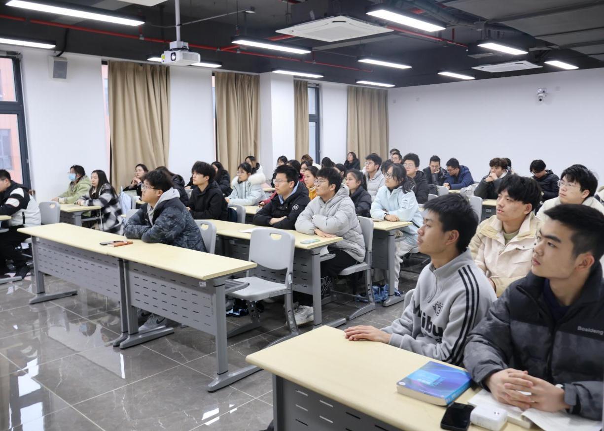 课程围绕“有理想、敢担当、能吃苦、肯奋斗”四大核心展开,用鲜活案例为青年学子带来一堂兼具思想性与感染力的成长教育课。在理想信念教育中,肖书记以革命英雄王战山坚守阵地四天四夜的英雄事迹,以及我院学生团队斩获全国创新创业大赛金奖的奋斗历程,勉励同学们以革命理想为标杆,坚定专业报国的远大志向。在责任担当方面,讲座以金成龙勇救落水父子、谈磊激流中救助遇险女子的先进事迹为切入点,教育引导学子在关键时刻挺身而出、主动作为,用实际行动诠释新时代青年的责任与使命。在吃苦精神教育上,通过黄国平博士逆境求学、终成栋梁的感人故事,鼓励同学们不畏求学艰辛,在磨砺中锤炼意志品格,把困难当作成长的阶梯。在奋斗实践环节,讲座聚焦白马校区学子的真实行动,讲述了同学们在溧水咪豆音乐节志愿服务、社区公益服务、校园生态保护等实践中的奉献故事,让奋斗精神变得可感可学、贴近日常。