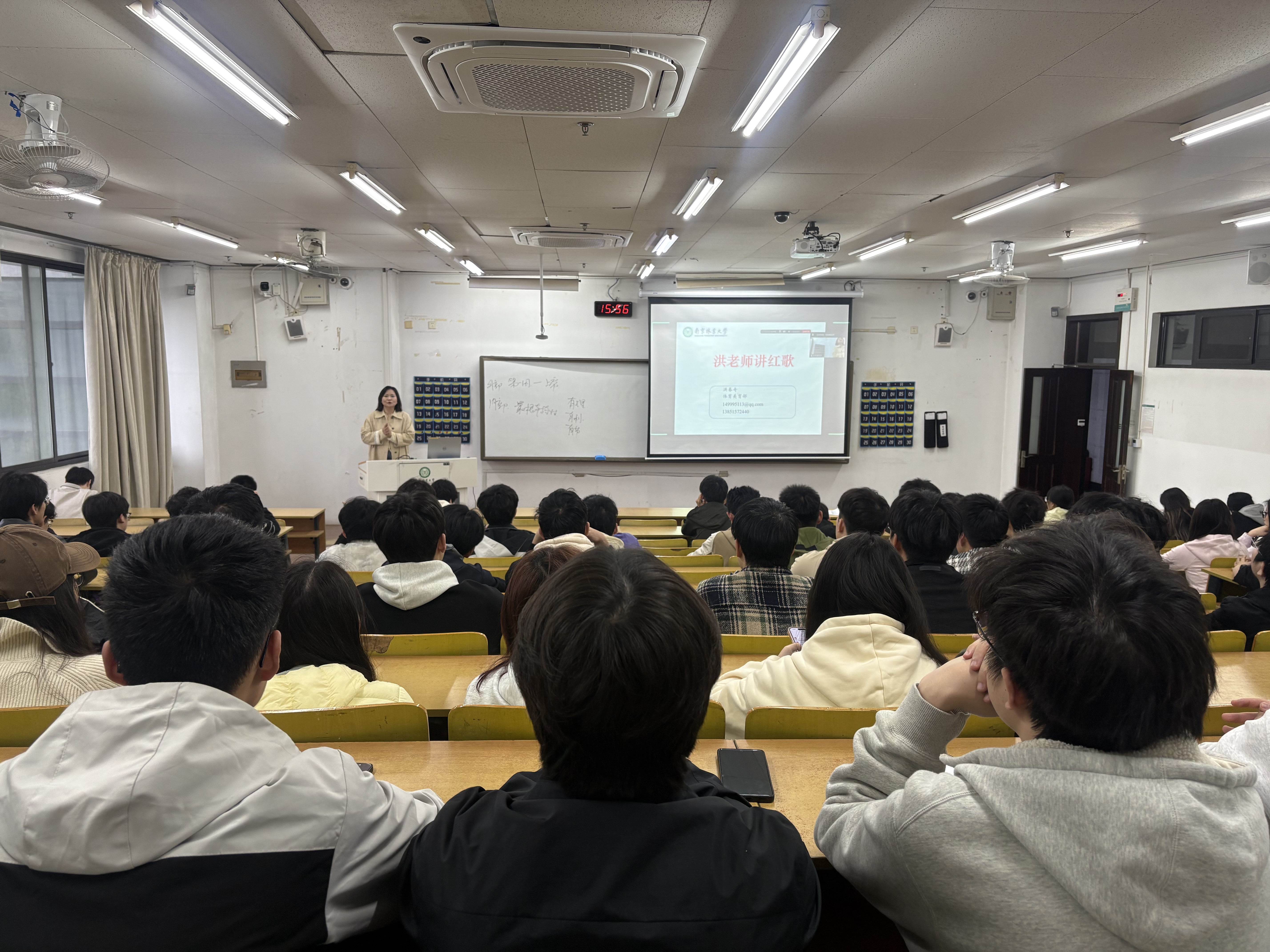 4月22日下午,我院在教五楼50201教室举办“洪老师讲红歌”美育大讲堂。本次讲堂由校体育美育部副主任洪春奇担任主讲,我院2026年积极分子培训班全体学员参加。