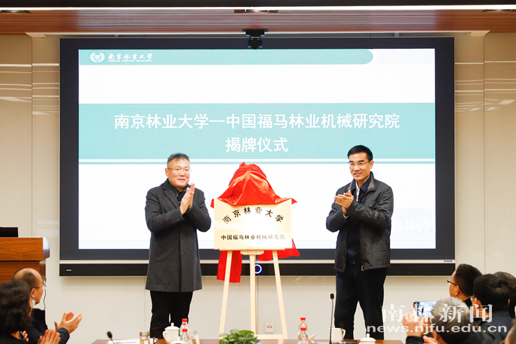 会上,尹佟明宣读了《关于成立南京林业大学——中国福马林业机械研究院的通知》;赵茂程和荆新保共同为研究院揭牌;研究院学术院长、我校机械电子工程学院周宏平教授介绍了双方合作核心内容,分享科技合作成果和典型事例。