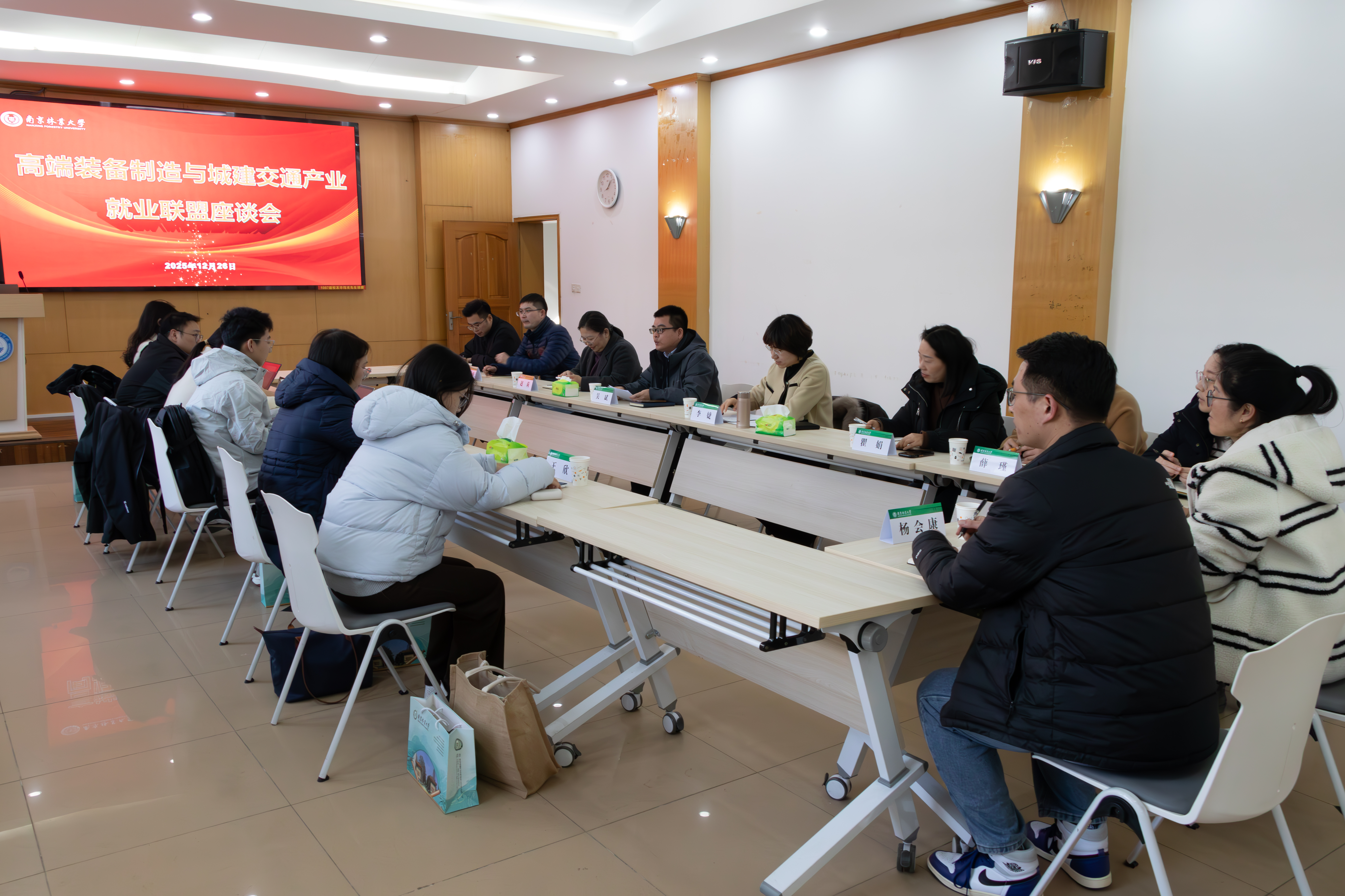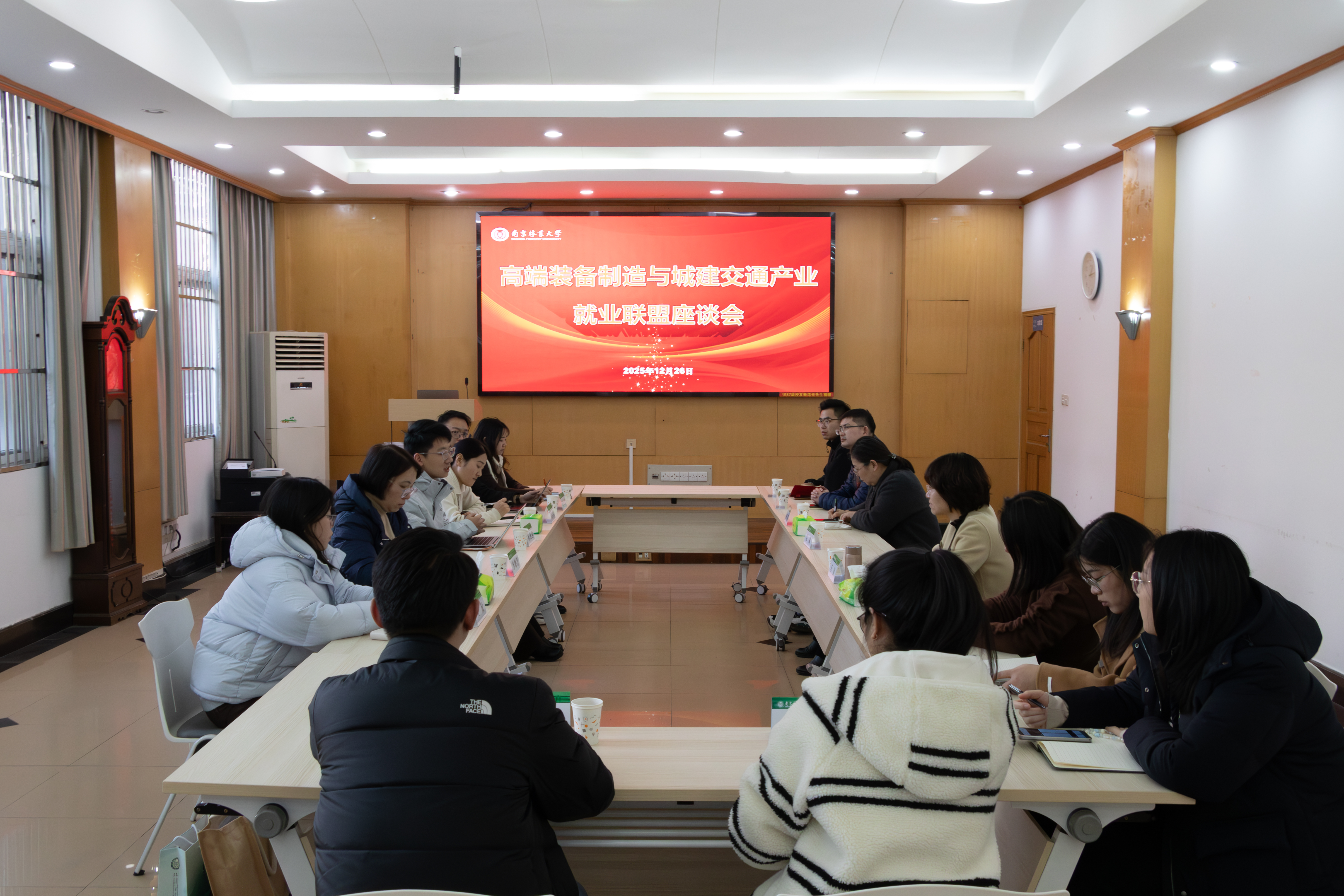 12月26日,南京林业大学高端装备制造与城建交通产业就业联盟座谈会在我院3220报告厅顺利召开。我院副院长(主持工作)吴斌,汽车与交通工程学院党委副书记、副院长赵莉,土木工程学院、信息科学技术学院、人工智能学院等相关学院毕业年级辅导员,以及奇瑞汽车、柳工常州机械、江苏海新船务重工、无锡深南电路等企业人力资源负责人参会。会议由我院党委副书记、副院长李婕主持。