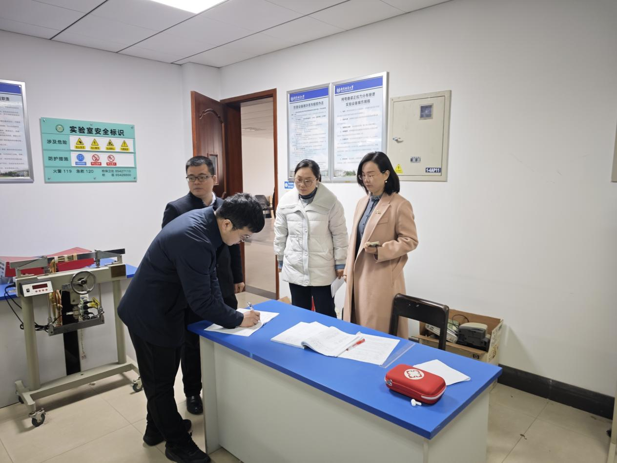 为深入贯彻落实学校关于假期实验室安全防范工作的部署要求,确保寒假期间学院实验室安全平稳运行,1月17日上午,机电院党委书记马平、副院长(主持工作)吴斌亲自带队,率学院实验室安全检查小组,对学院各教学、科研实验室开展了一次全面、细致的寒假前安全专项检查。学院分管副院长姜东、实验中心负责人及相关实验室安全责任人陪同检查。